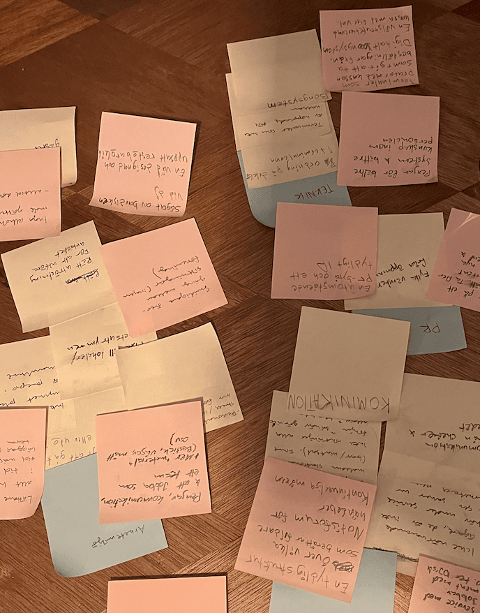 Brainstorming with stakeholders. Both critique on current workflows and imagination of ideal future strengthened the outline of the design process. Concepts now focus on communication and task management.
